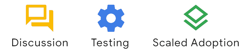 يُعدّ الاختبار أمرًا بالغ الأهمية لأنّه يكشف عن المشاكل أو الثغرات التي قد تتطلّب المزيد من العمل. ستكون هناك العديد من الدورات التكرارية للمناقشة والاختبار. تتوفّر اليوم مجموعة من الاقتراحات الجاهزة لاختبارها من قِبل المطوّرين، وسنوفّر المزيد منها للمراجعة مع اقتراب عام 2022.