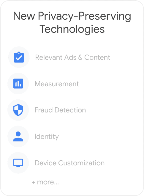 Współpracujemy ze społecznością internetową i zainteresowanymi podmiotami z branży, aby opracowywać nowe technologie chroniące prywatność, które mogą wspierać zdrowy i zrównoważony ekosystem. Obejmuje to specjalne interfejsy API obsługujące reklamy, które są kluczowym elementem ekosystemu finansującym większość treści w internecie, a także inne funkcje, takie jak wykrywanie oszustw, identyfikacja czy dostarczanie treści dostosowanych do urządzenia użytkownika.