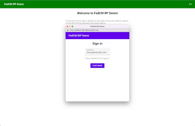 - Tocca il pulsante Visita la RP per provare FedCM.
