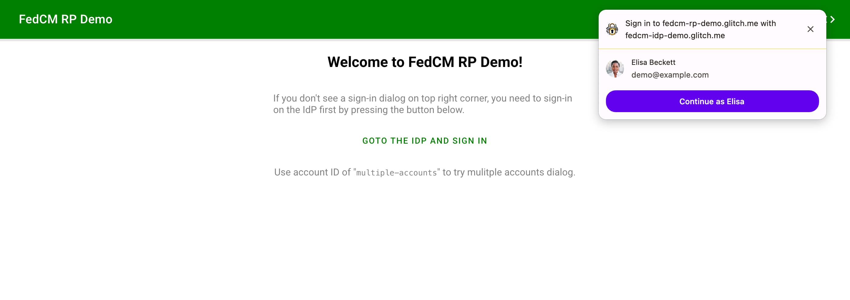 इसे खुद आज़माने के लिए, Chrome 125 का इस्तेमाल करके https://fedcm-demo-rp.dev/active-mode पर जाएं.