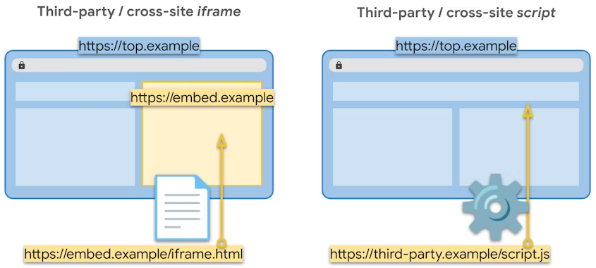 Además, cuando se habilita la coincidencia de subdominios, las cookies de terceros también estarán disponibles en las solicitudes y en los iframes asociados con los subdominios correspondientes. Por ejemplo, si https://test.example usa la coincidencia de subdominios, las solicitudes de subrecursos como https://cdn.one.test.example/image.jpg recibirán cookies de terceros.