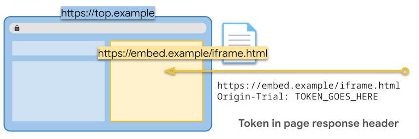 Si necesitas volver a habilitar las cookies de terceros para una página incorporada en un iframe entre sitios, puedes incluir el encabezado HTTP Origin-Trial en la respuesta de la página: